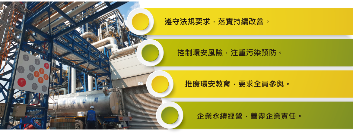 台鎔為專業甲級廢棄物處理廠,本著資源有限,循環無限,戮力提升廢棄物資源化技術,成為多元化資源再生中心,以利環境永續發展;並致力提升工作環境促進員工健康、遵守或超越環安衛相關法規要求,以善盡社會責任。 將承諾執行以下環安政策,以達成企業永續發展的目標:
